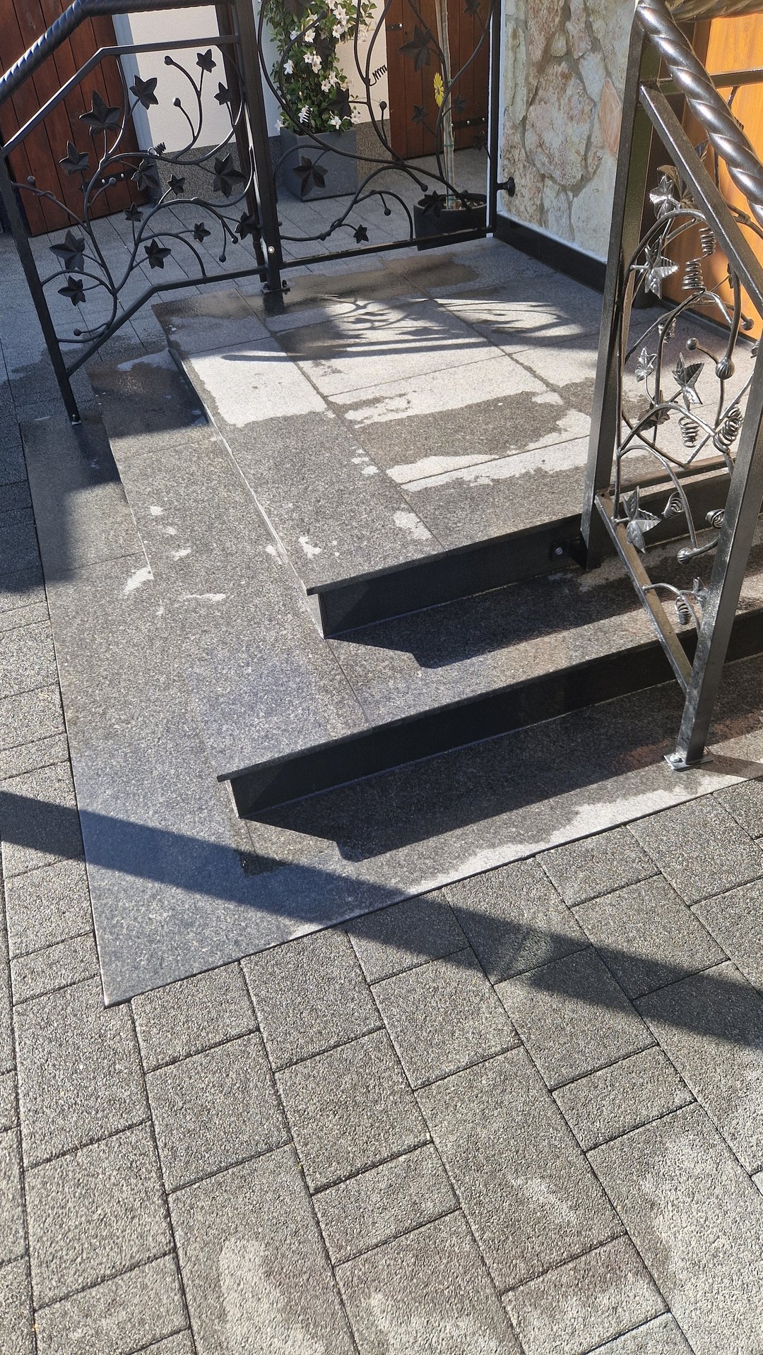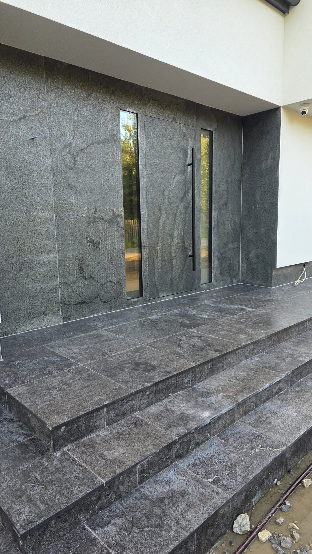 Eleganckie schody zewnętrzne wykonane z czarnego granitu w Rybniku. Montaż wykonany profesjonalnie, z dbałością o każdy detal. Umów się na darmowy po…